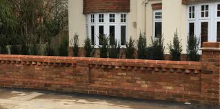 A brick garden wall is typically built with bricks and mortar. This will be a guide for laying the brick. Follow the block manufacturer's instructions for wall height limits. That nifty brick was also etched into the cement and stained. Laid in a stretcher bond.